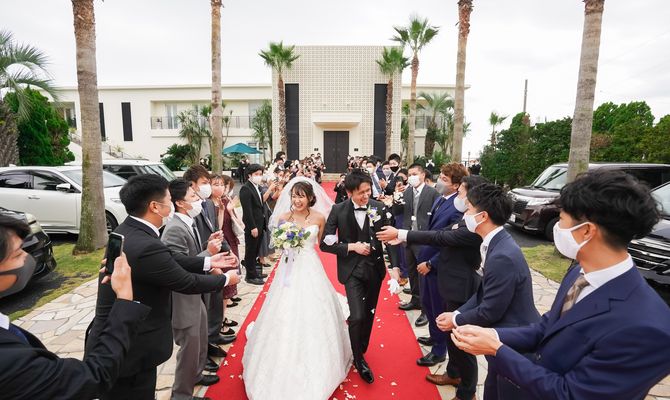 「海」と「アットホーム」をテーマにしました。夫婦揃って海が大好きなので、装飾は白、青、木の茶色などを取り入れました。来ていただいた方との距離が近く、参加して良かったと思ってもらえる様な式にしたい!と思っていたので、歓談の時間も充分にとりました!