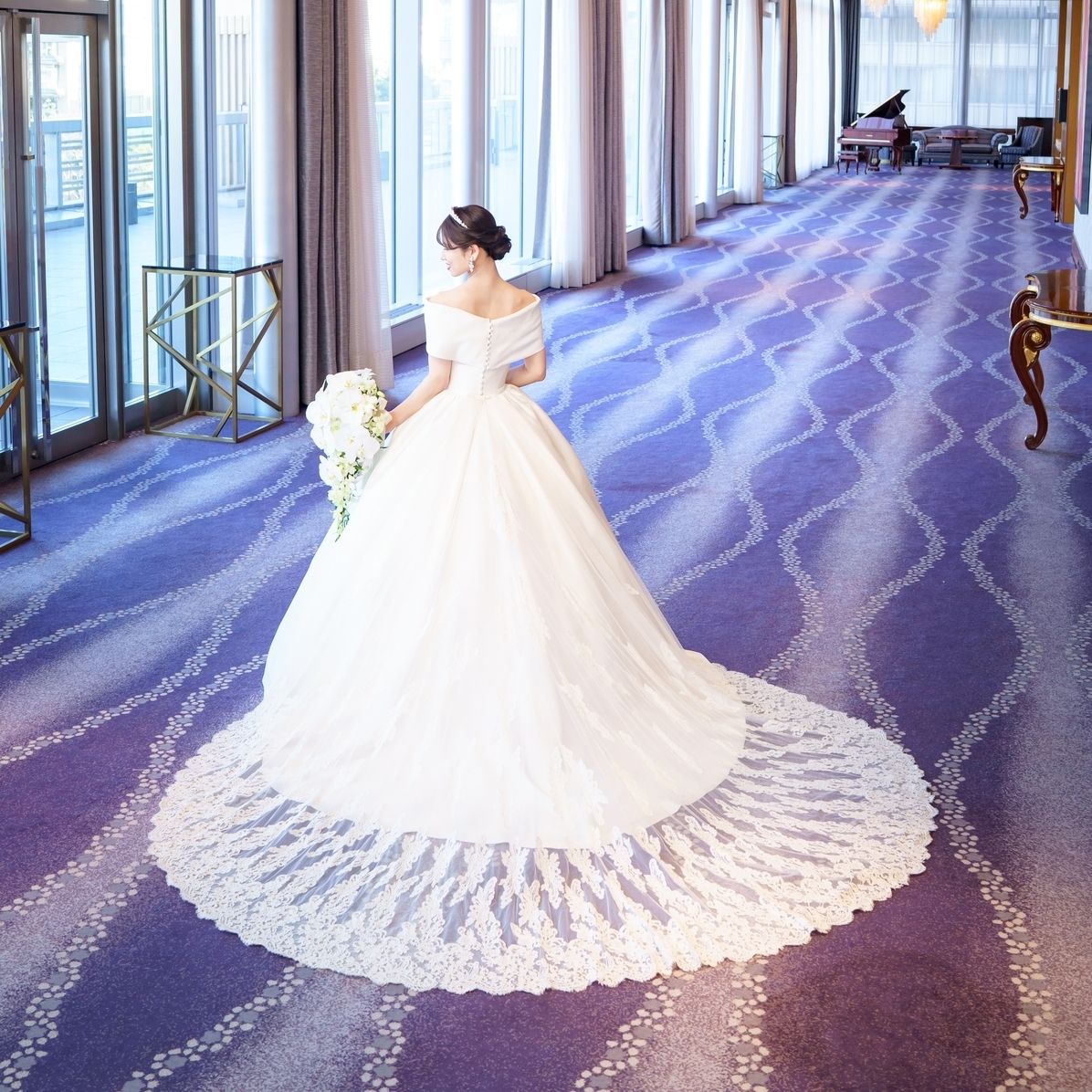 ボリュームのあるプリンセスラインと、レースが美しいトレーンがお気に入りです。