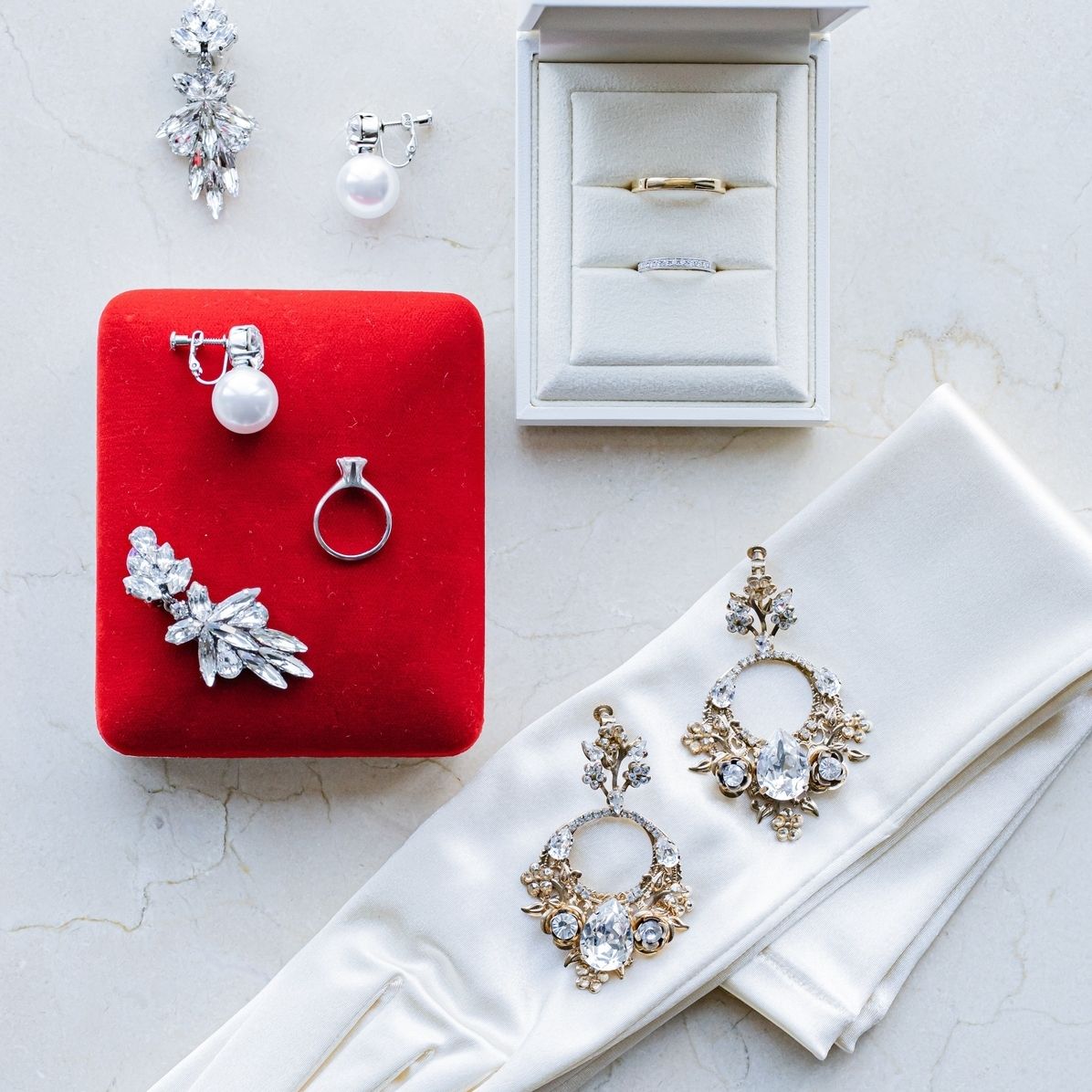 上品なデザインがドレスにぴったりで、耳もとのジルコニアのおかげで顔まわりも華やかになりました。