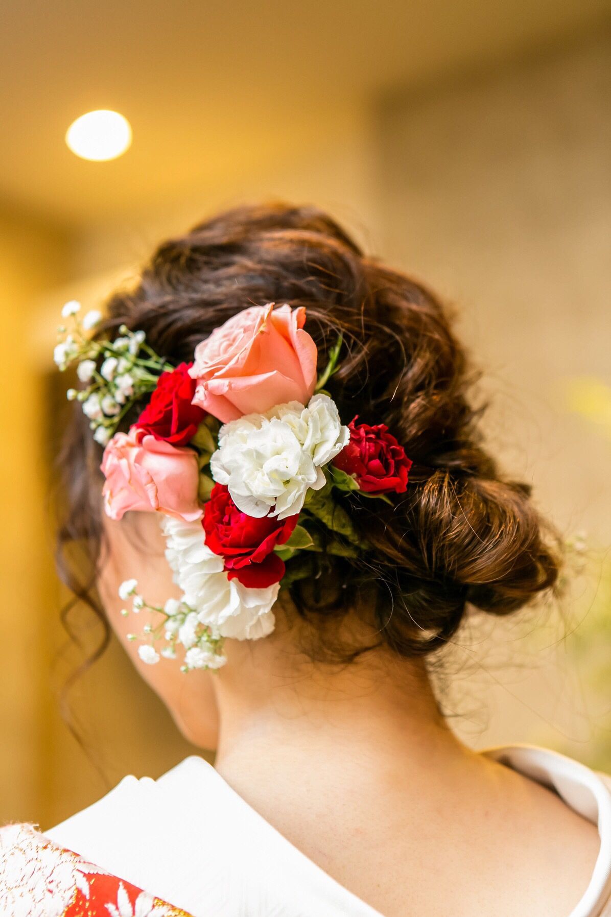 和装のときの髪の毛のお花は自分でつくり節約しました。