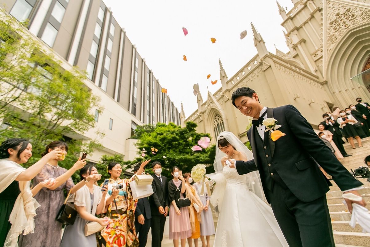 大聖堂での式が憧れでした。チャペル、階段見た瞬間即決。チャペルの外の階段から降りて挨拶がしたかったです。ディズニープリンセスのような気分になれます。