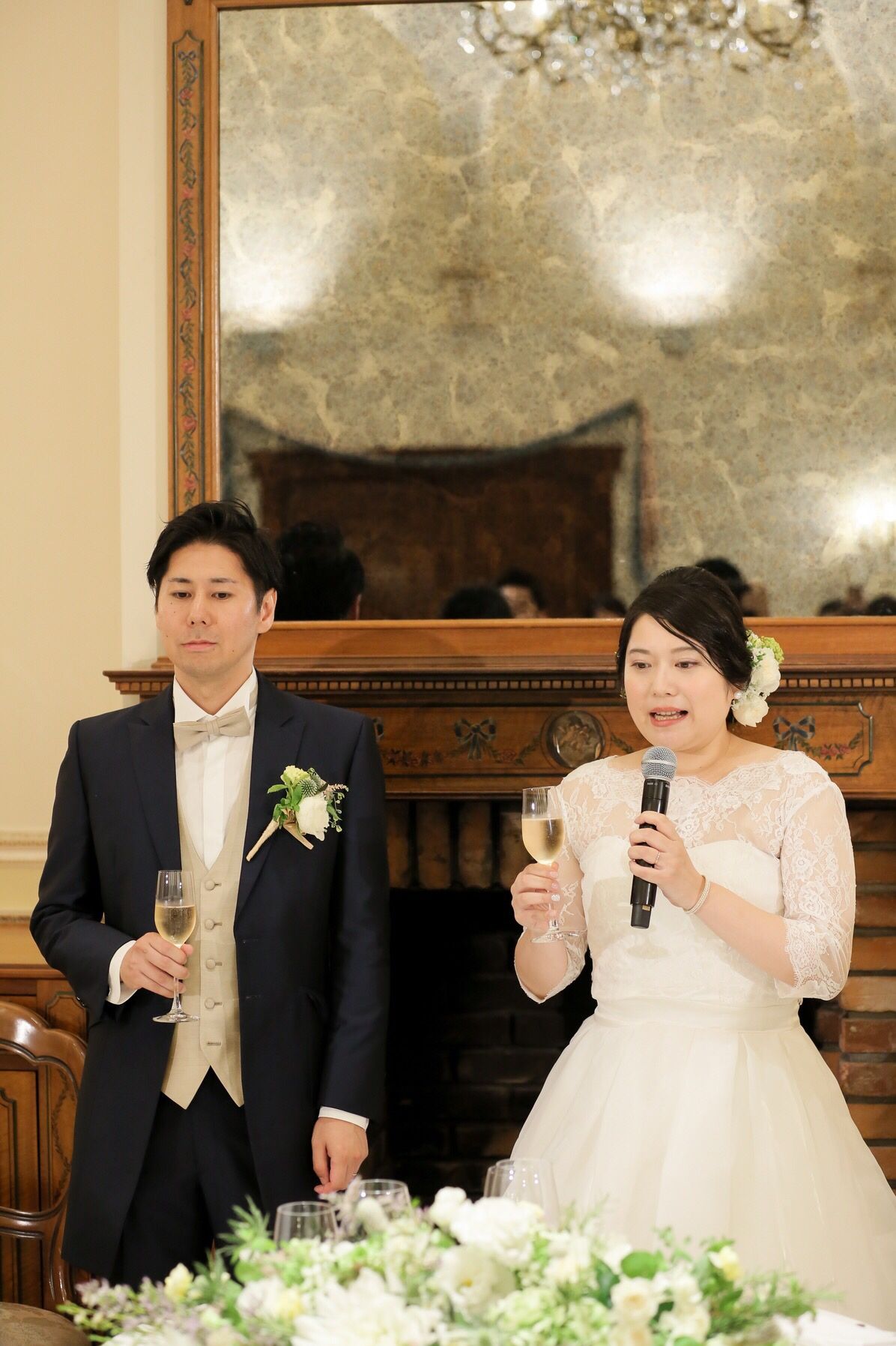 全体で8分くらいと少し長めですがデザートやコーヒーも延長で楽しんでもらえる長さになったかなと思います。 新郎父が挨拶で笑いをかっさらったあとに、両親結婚式の写真が出てきたので意図せず爆笑に繋がったこともいい思い出です。