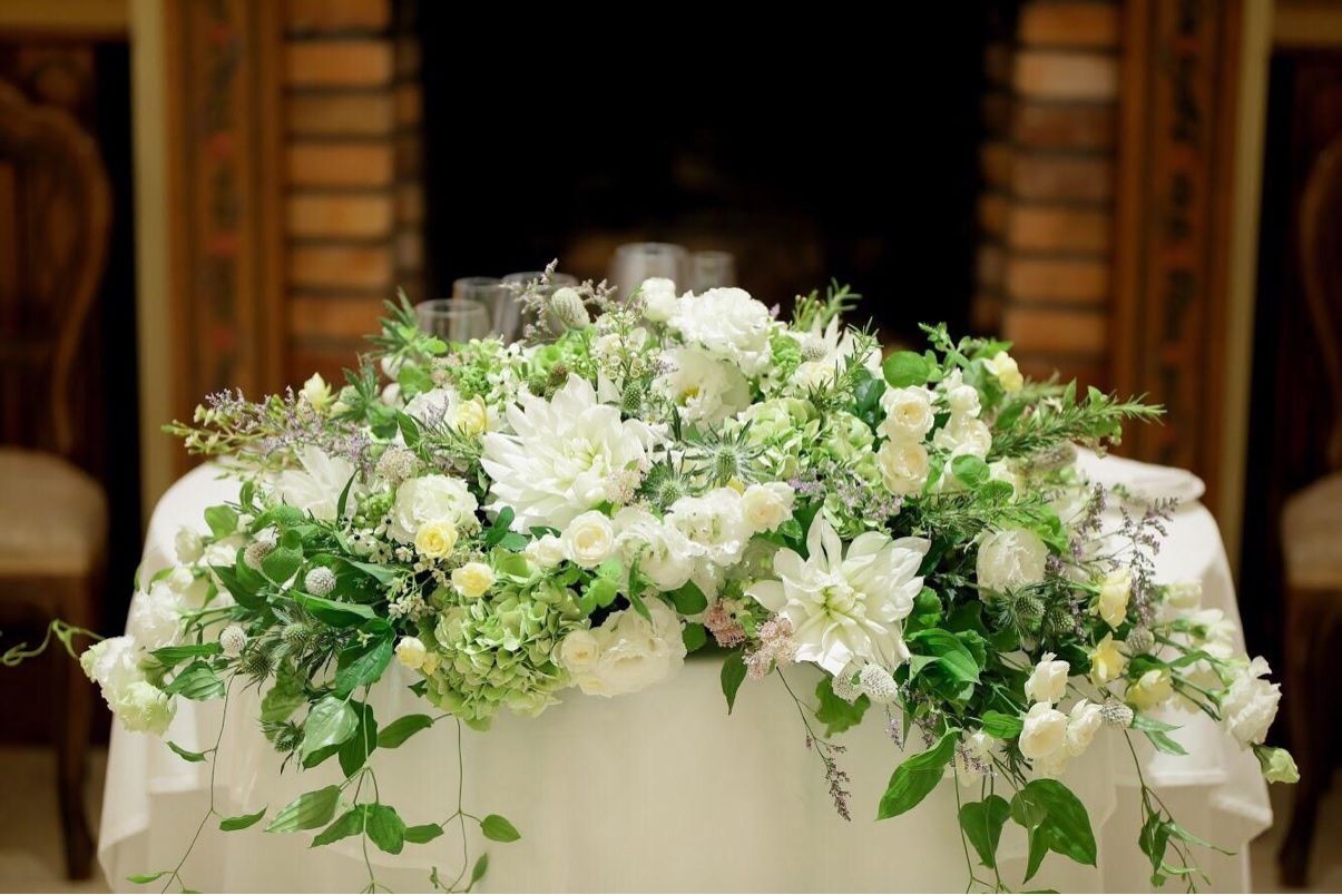 白・グリーンをメインにナチュラルで上品に、夏らしく爽やかさのある装花を目指しました。 ピンク・黄色・紫をポイントにしています。