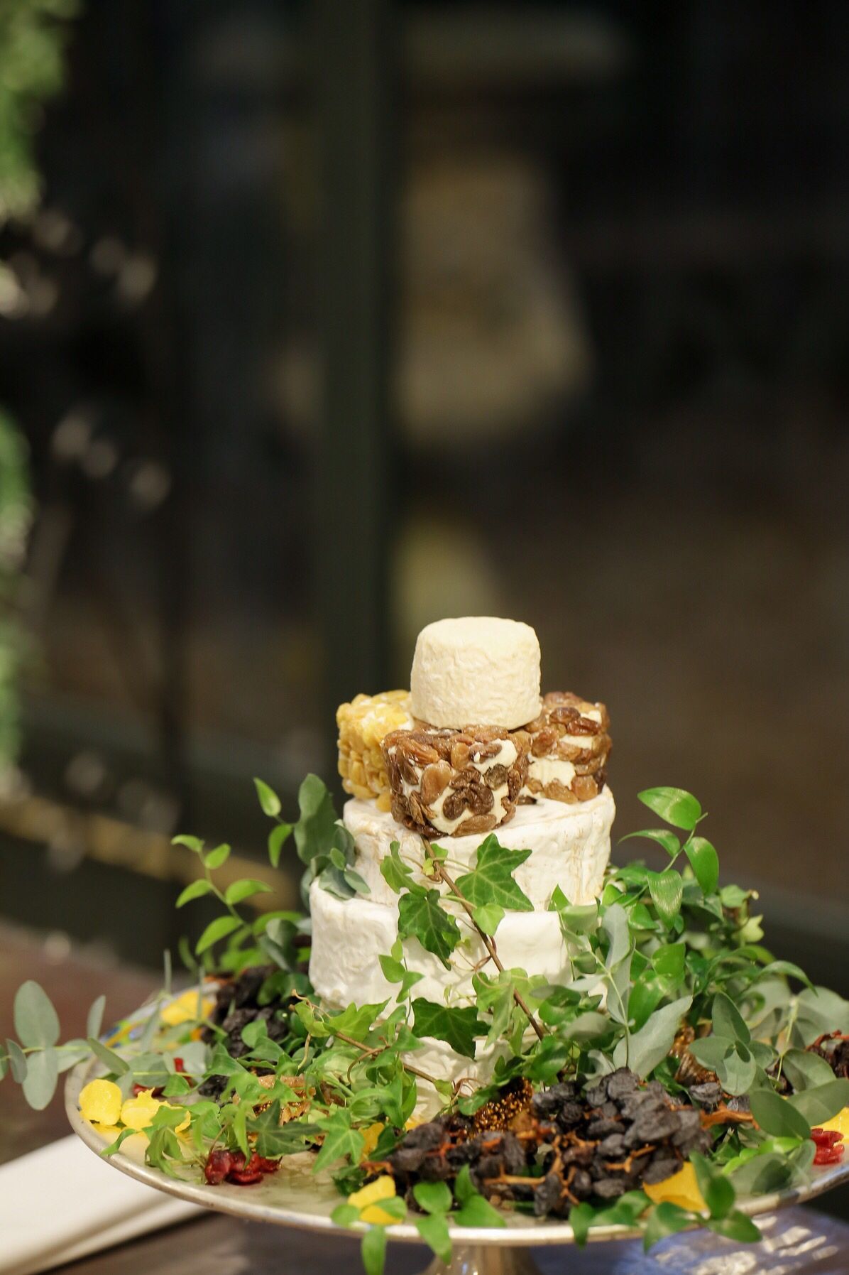 また、デザートビュッフェの一部をフロマージュなど甘くないものにできないかとも各会場で相談をしていました。 ASOは後者はできないけど、ウェディングケーキを他のものに変えることはできるとお肉や生ハム、チーズなどを提案していただき、私たちの希望が叶えられるチーズ入刀に決めました。