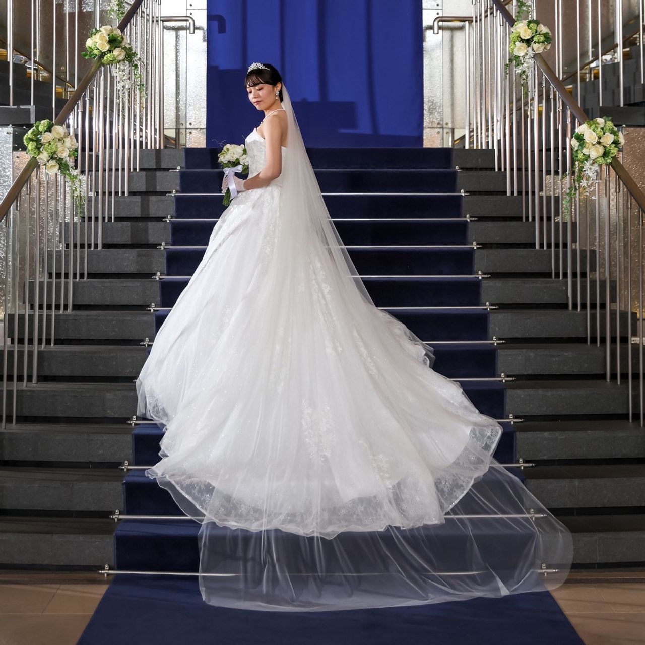 挙式ではケープを外し、披露宴ではケープを付けています。同じドレスでありながら、全く違うドレスのようになり、素敵でした。