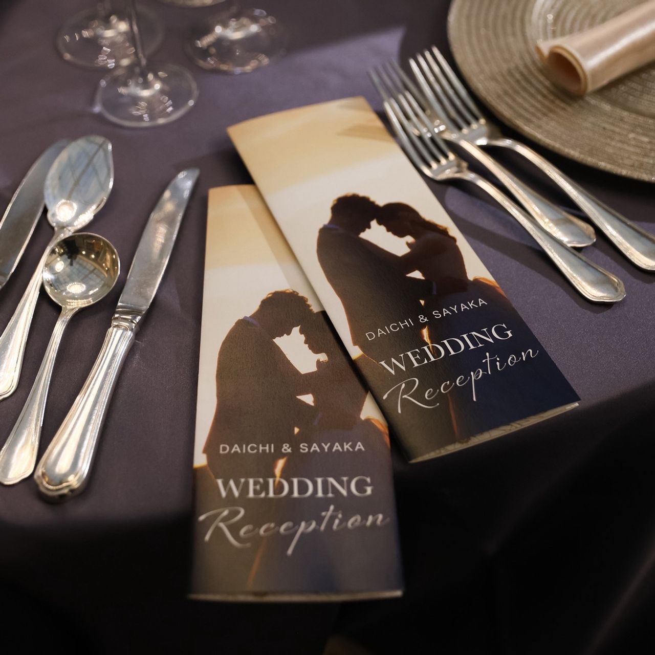招待状・席札・メニュー表は、式場の元々代金に含まれているものを使用し、席次表は手作りで作成しました。