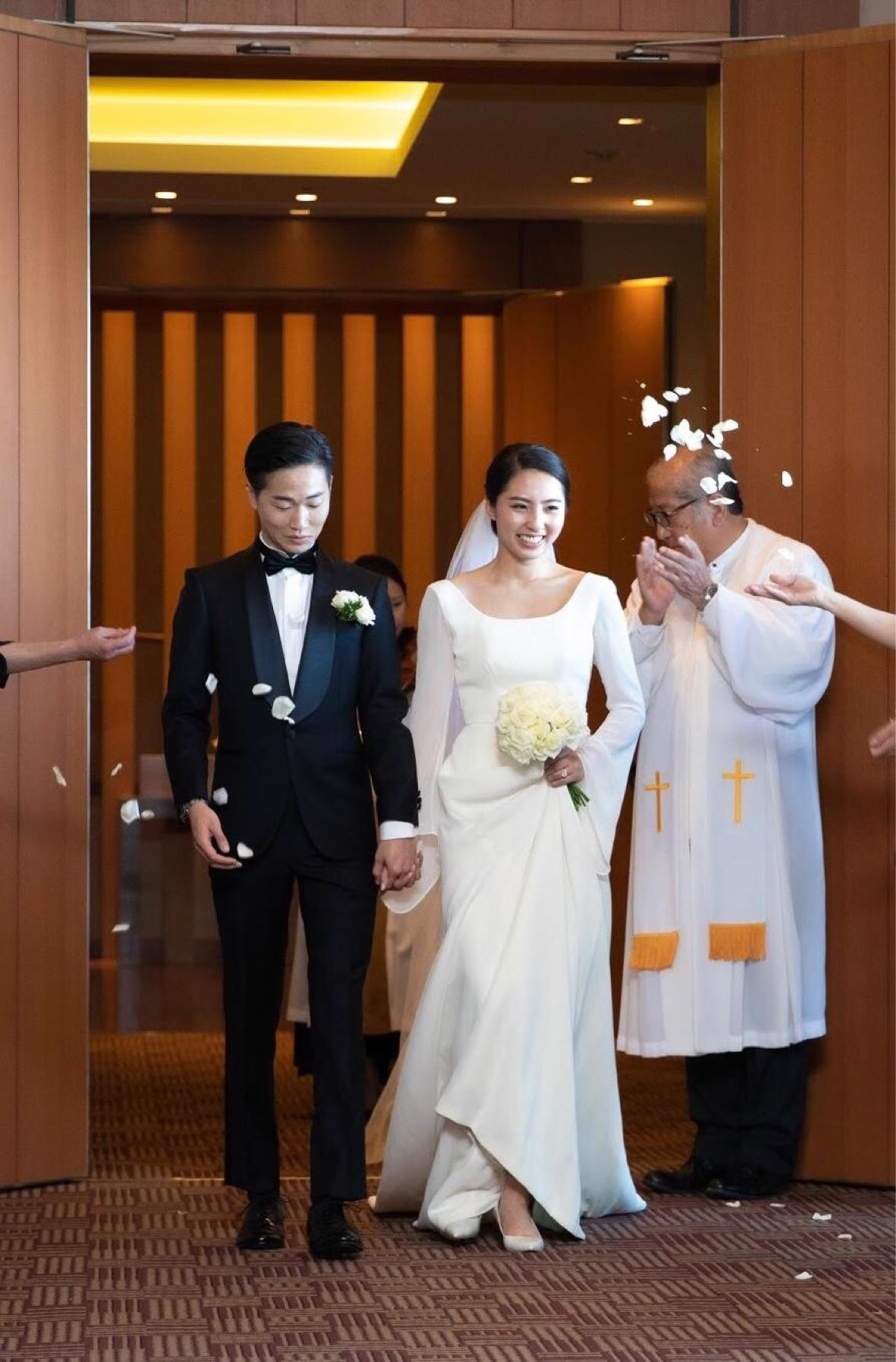 挙式では、何も身につけずに父とバージンロードを歩き、彼のもとに向かいたいというこだわりがありました。