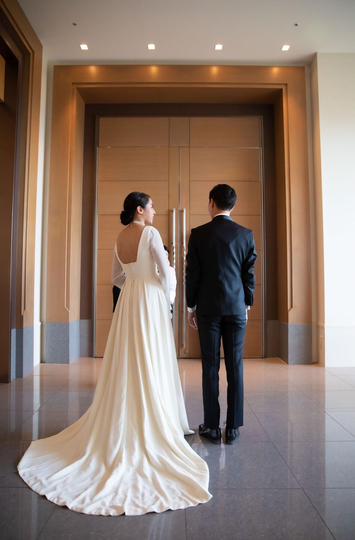 一番の親友でもある夫に、この瞬間までドレスやヘアメイクについて話していなかったので緊張しました。