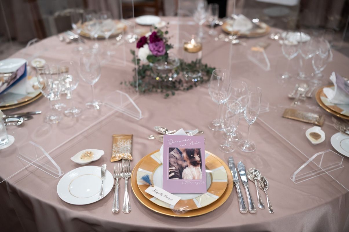 披露宴はあまり内容を詰め込みすぎず、友人同士もゆっくり、食事やお話ができるようにしてほしいと思っていました!あとはアクリル板設置や、受付の名前の記入をなくしたりなど、コロナ対策をしっかりとして、安心して参加してもらうようにしました。