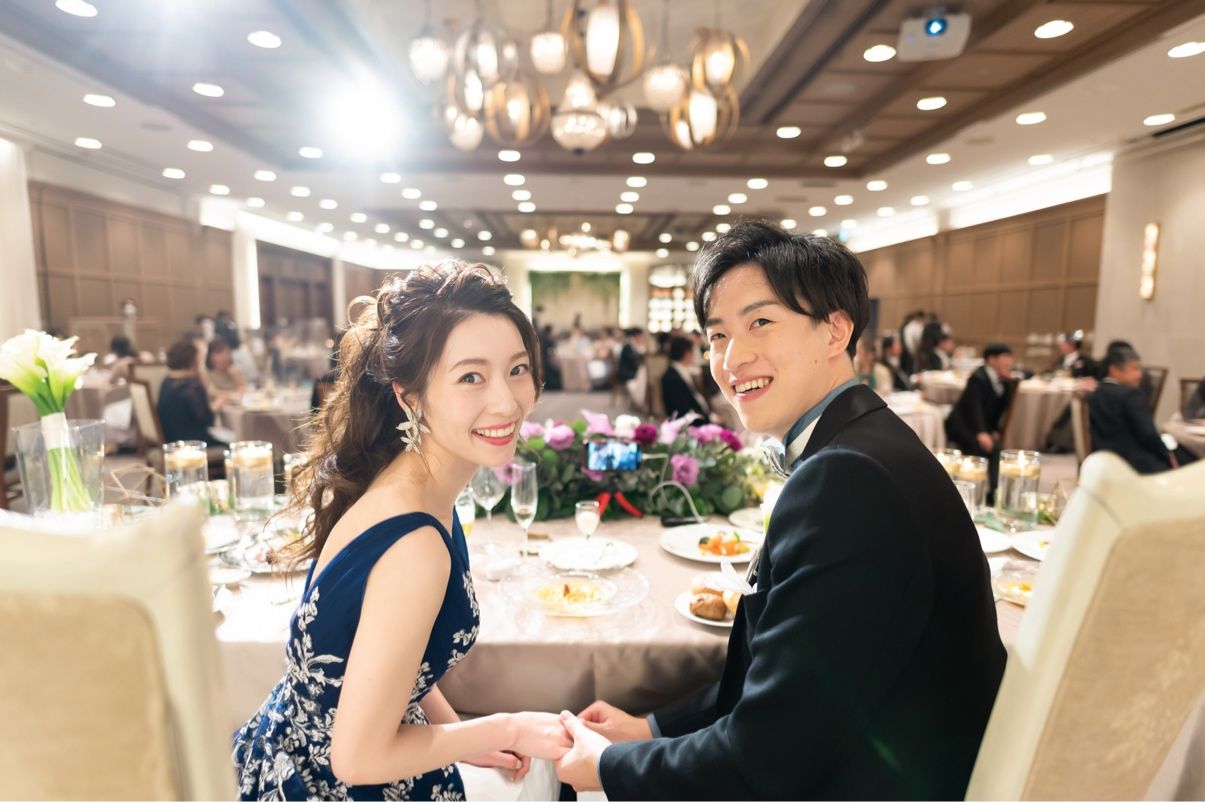 私は、シンプルでスタイリッシュな披露宴会場がよくて、WEST SUITEにしました。会場のトーンも落ち着いていて、どんなお花の色味にも合う披露宴会場だと思います!コロナの中での結婚式でしたが、会場が広かったので、テーブル数を増やしても距離をとることができてよかったです。