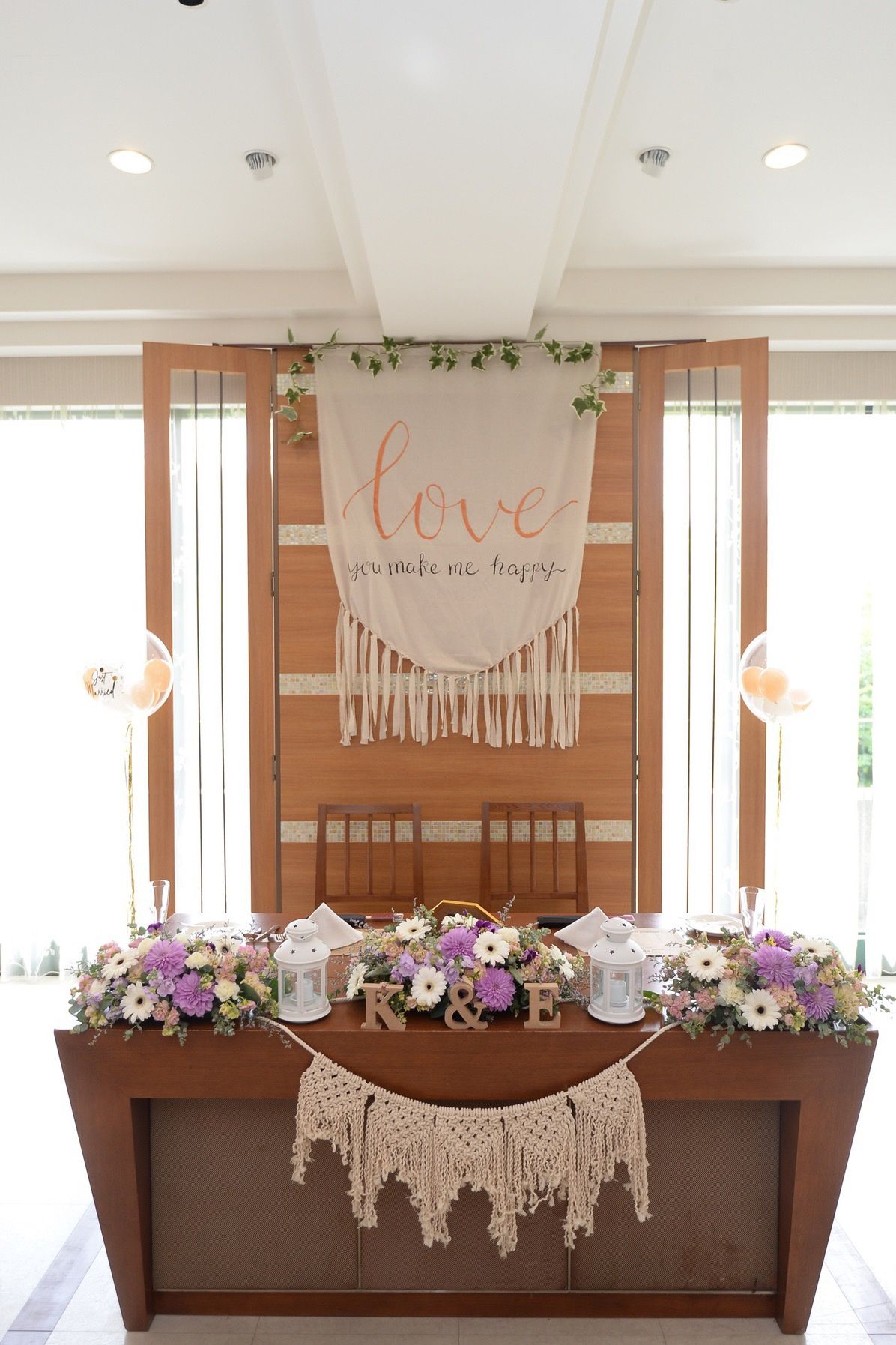 披露宴ではジャスミンのイメージに合わせたラベンダーカラーのお花のデザインにしました。