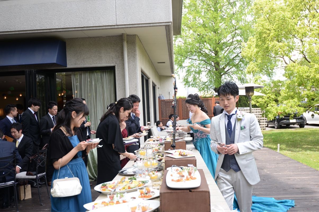 遠方の方が多いので、愛媛の美味しいものを取り入れたお料理をお願いしました。1番のこだわりはガーデンでスイーツとおつまみの両方を出したお楽しみビュッフェをしたことです。
