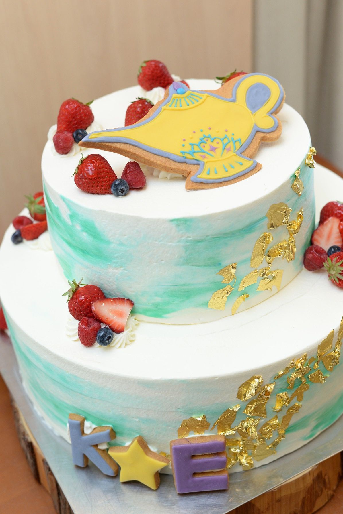 アラジンのランプと2人のイニシャルをアイシングクッキーにしてもらいました。マーブルケーキや金箔をつけてもらいたく、イメージデザインを直接お話して相談させてもらえてよかったです!