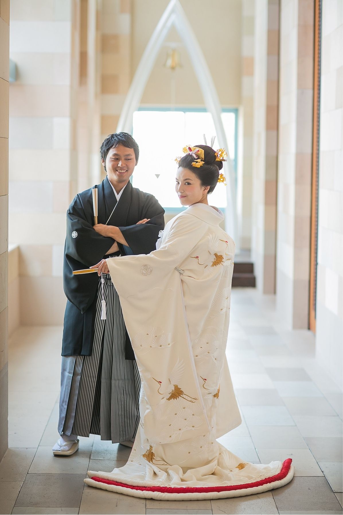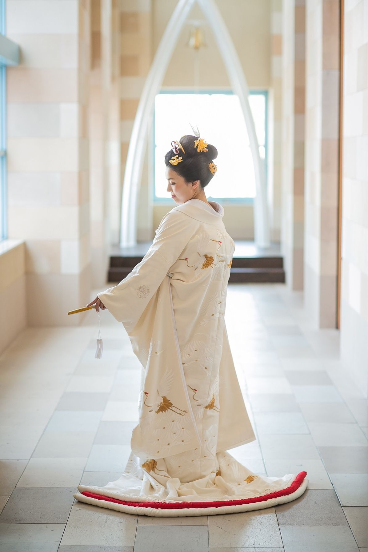 挙式は和装で人前式だったので迷わず白無垢にしました! 鶴の刺繍があしらわれた白無垢で鶴の表情がとっても優しくて一目惚れでした。