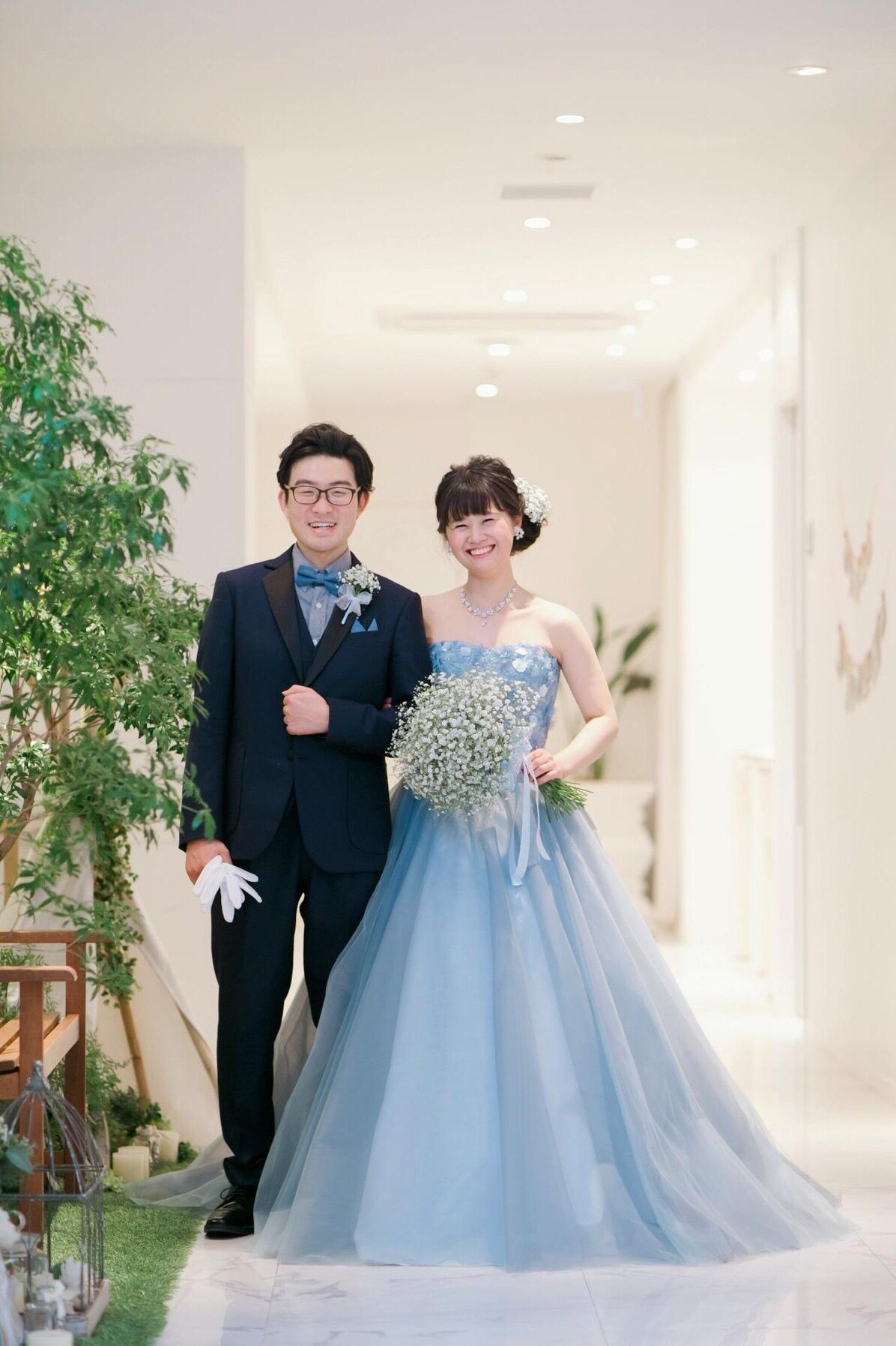 カラードレスは、ナチュラルウェディングのイメージにぴったりなブルーグレーに惹かれました。