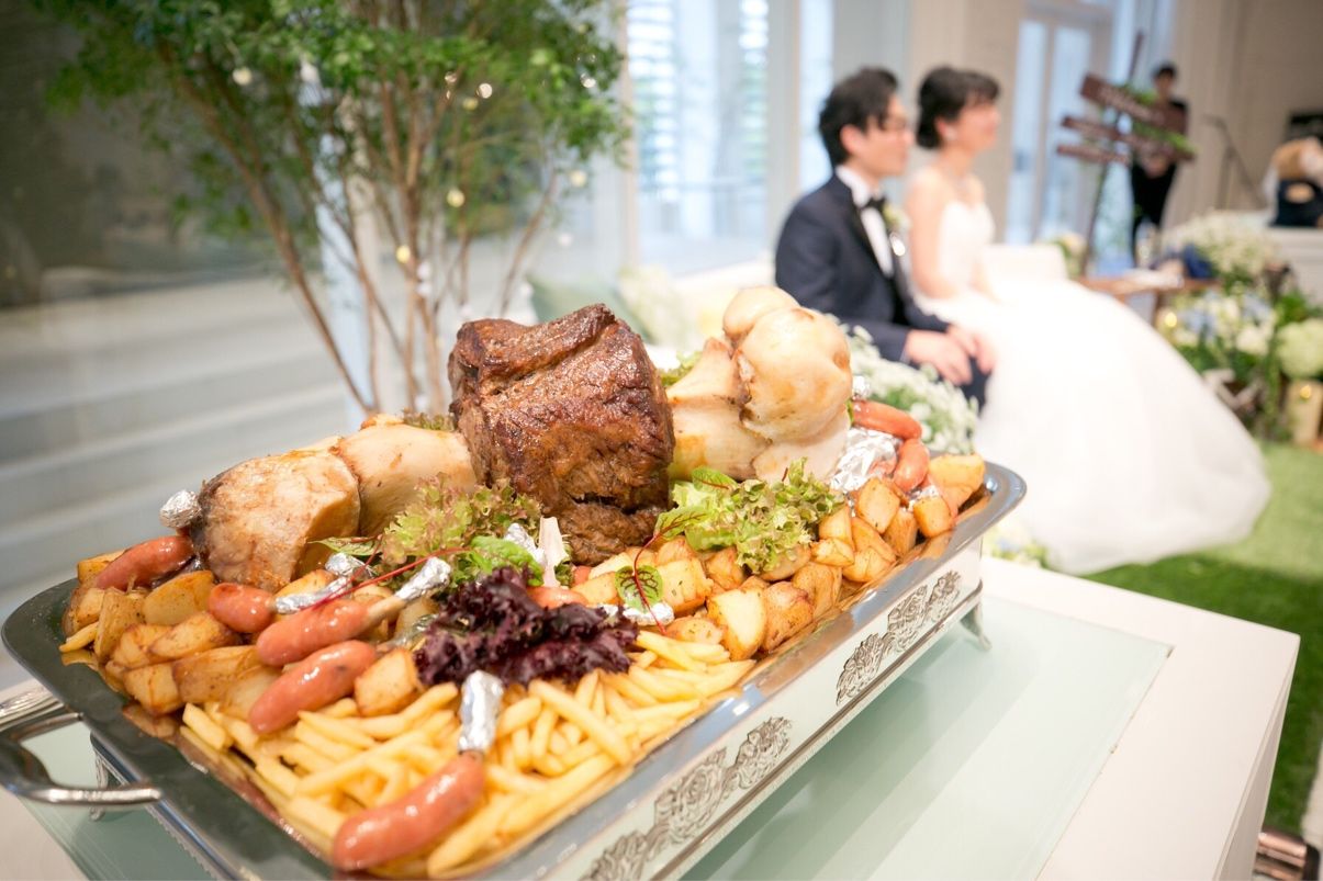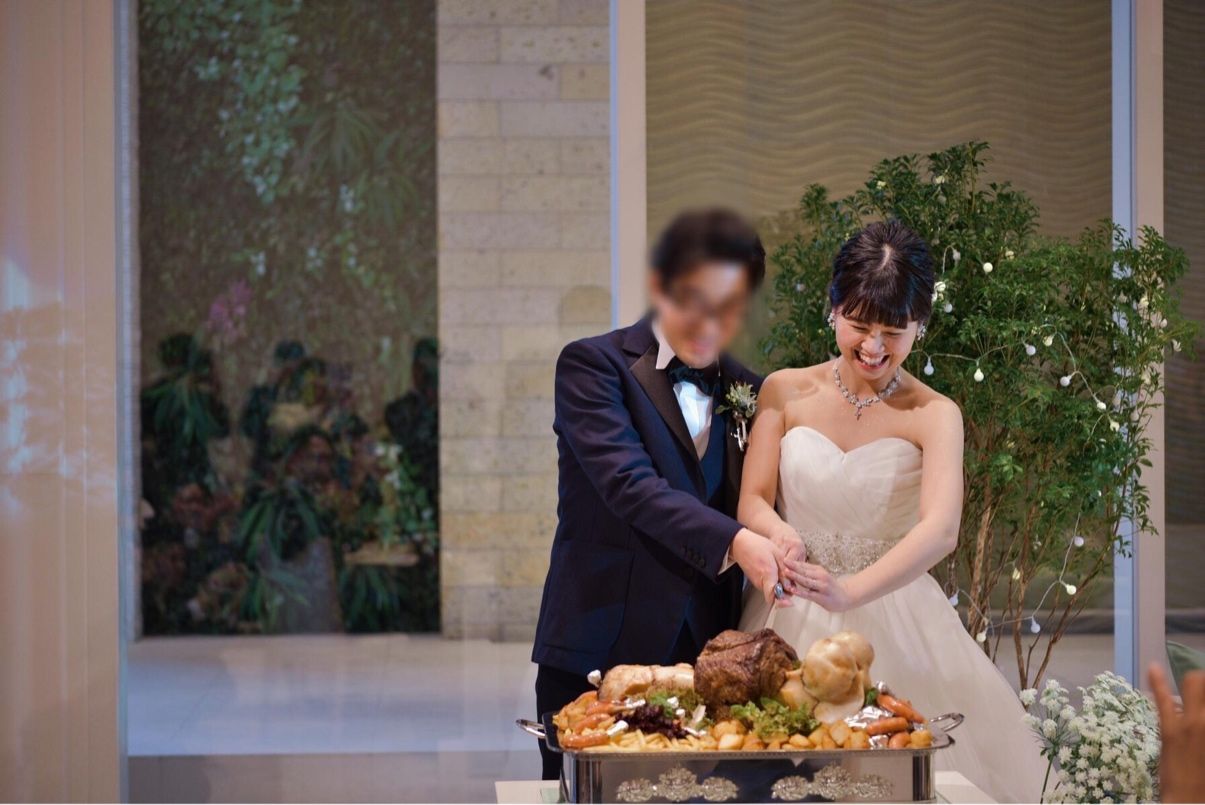 一般的なケーキ入刀ではなく、お肉入刀&ファーストバイトにしたことです。