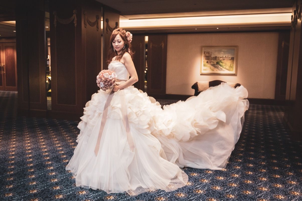 ウェディングドレスはヴェラウォンと決めていたのですが、ゴージャスな総レースの刺繍が織りなす優美なシルエットが、他のドレスにはない圧倒的な存在感とロイヤル感で一目惚れして決めました。