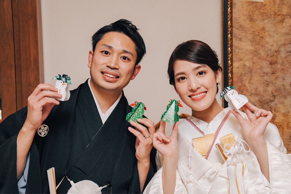 ゲストに満足していただきたくて、食事にはこだわりました。和洋を組み合わせて最後まで美味しくいただけるよう工夫しました。またお互いの出身地の食材をいれていただいたり、クリスマスが近かったのでヒイラギの葉を飾っていただきオリジナリティを出しました。