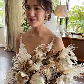 挙式はdrerich collectionでイヤリングをレンタルしました。キラキラして大人っぽい雰囲気に。披露宴ではアップヘアに合わせてchocolat weddingのplumeを。動くたびにお花がゆれ、存在感もありとっても好評でした♡