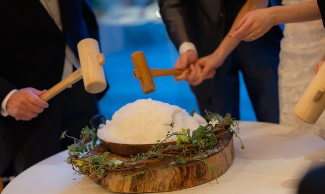 入場や乾杯、ウェディングケーキセレモニーはテラスで行い、ガーデンウェディングをテーマにした披露宴にしました。