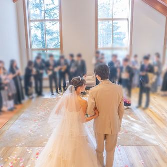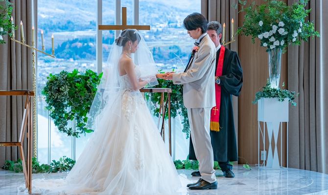 家族や仲の良い友人のみでの少人数挙式だったので、これまでの思い出を振り返りながら感謝を伝えられるような結婚式にしたいと準備しました。ゲスト参加型のイベントも計画し、楽しんでもらえるように工夫しています。式場を決める際に決め手となったポイントは、挙式会場のロケーションです。特にチャペルのカーテンが開いた瞬間の景色の美しさに心を奪われました。