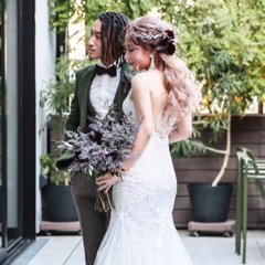 華やかなお花に加えてお花畑を連想させる野花やシルバーグリーン、流木やエアープランツで少しのスパイスを効かせてもらいました。 完璧でした!