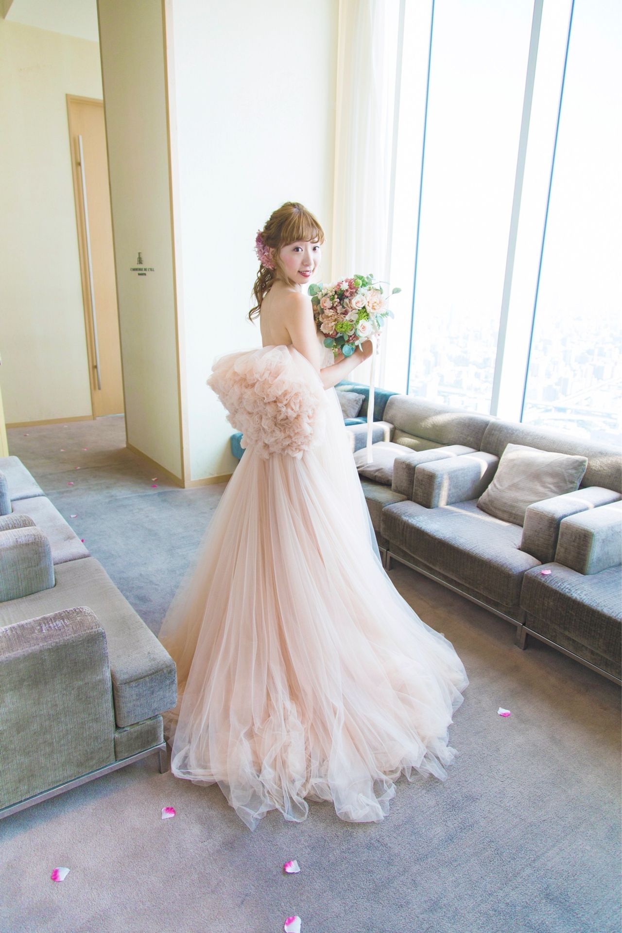 そんな中インスタで見つけた天使の羽ドレス。可愛い!着てみたい!の一心で東京まで軽い気持ちで行きましたが、試着した瞬間それまでになかった新鮮さとこれだ!!!という衝撃と「脱ぎたくない」という気持ちになりました。
