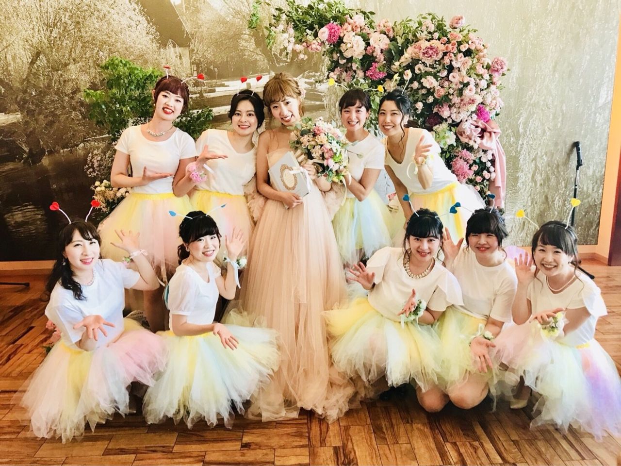 9人の友人が余興で踊ってくれたダンスがとてもとても可愛くて、それにサプライズで手作りのアルバムをプレゼントしてくれて感動しました。