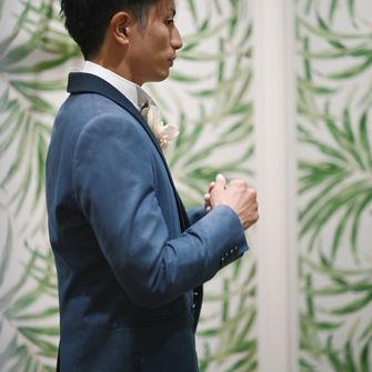アットホームな結婚式にしたいと思っていたので、お揃いのかりゆしを用意して両家の親族に着てもらいました。