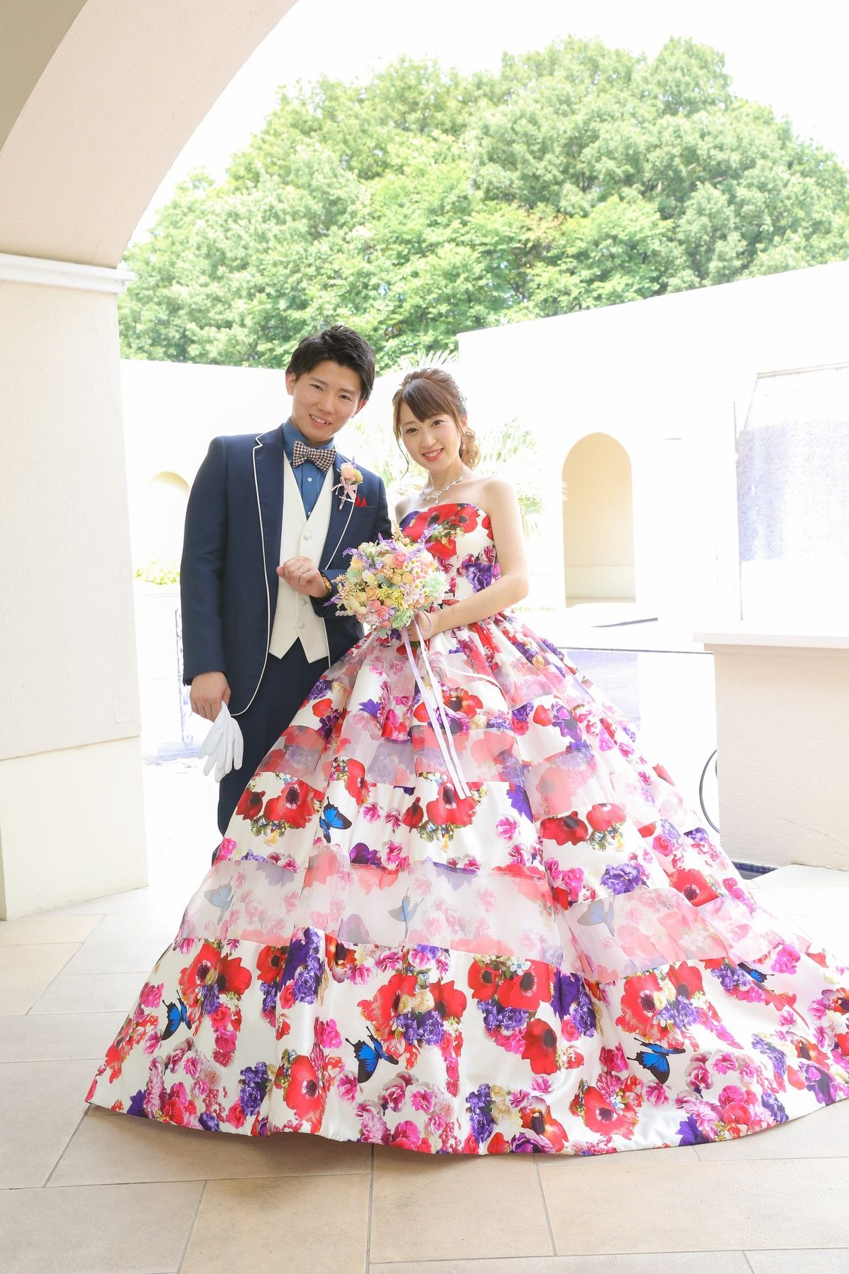 蜷川実花さんの花柄がとても綺麗なドレスを選びました。