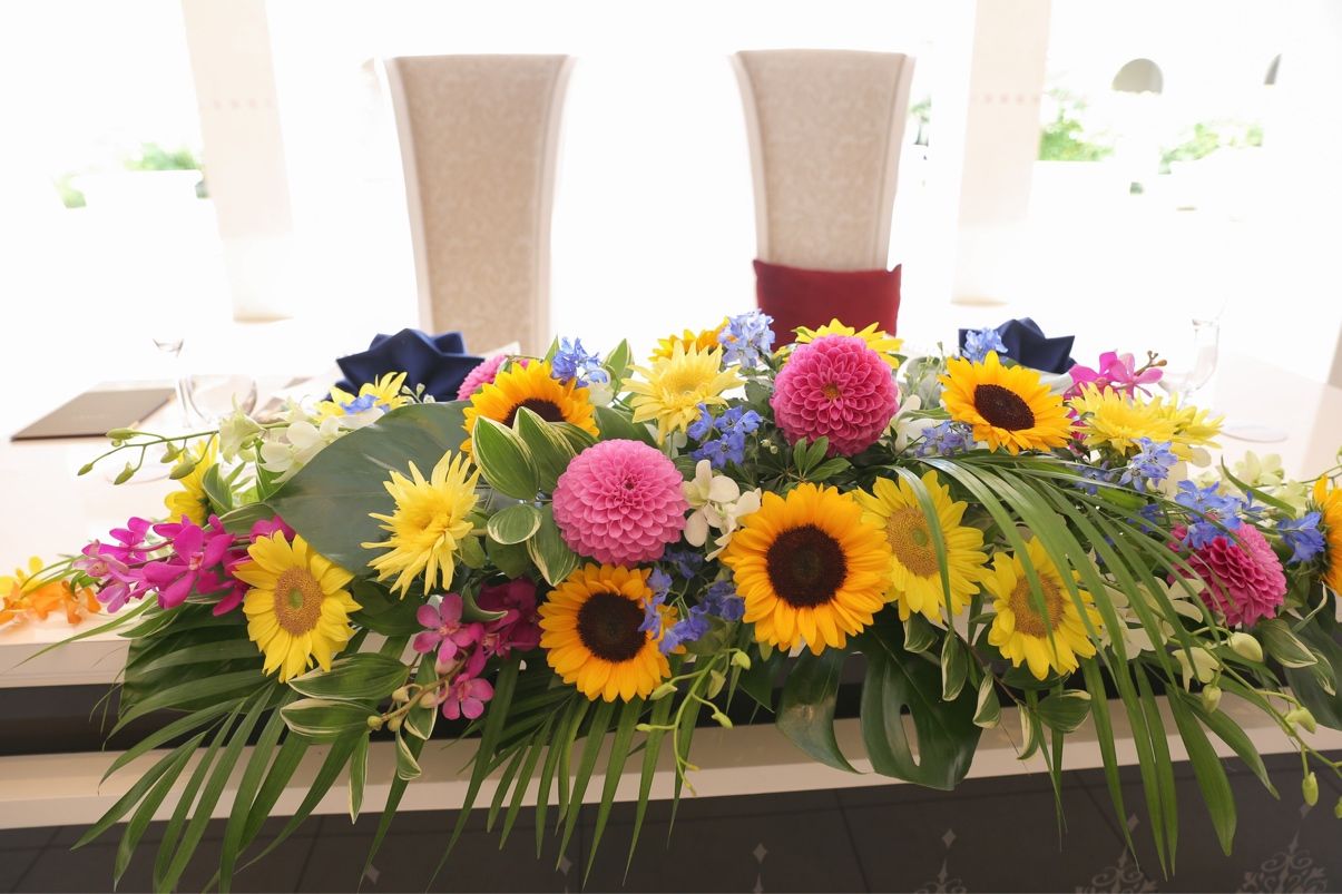 リゾート感を出すために、ヤシの葉っぱや向日葵などの鮮やか且つ南国系のテイストにしてほしいとお願いしました。