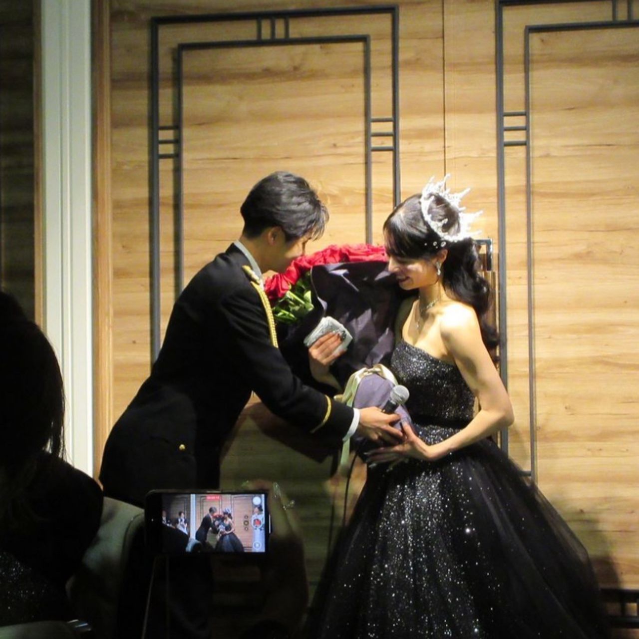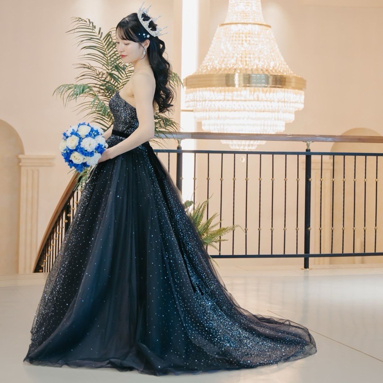 こちらもアニヴェルセル表参道にて選んだ、キラキラがちりばめられた黒いドレスです。キラキラ感が決め手でした。