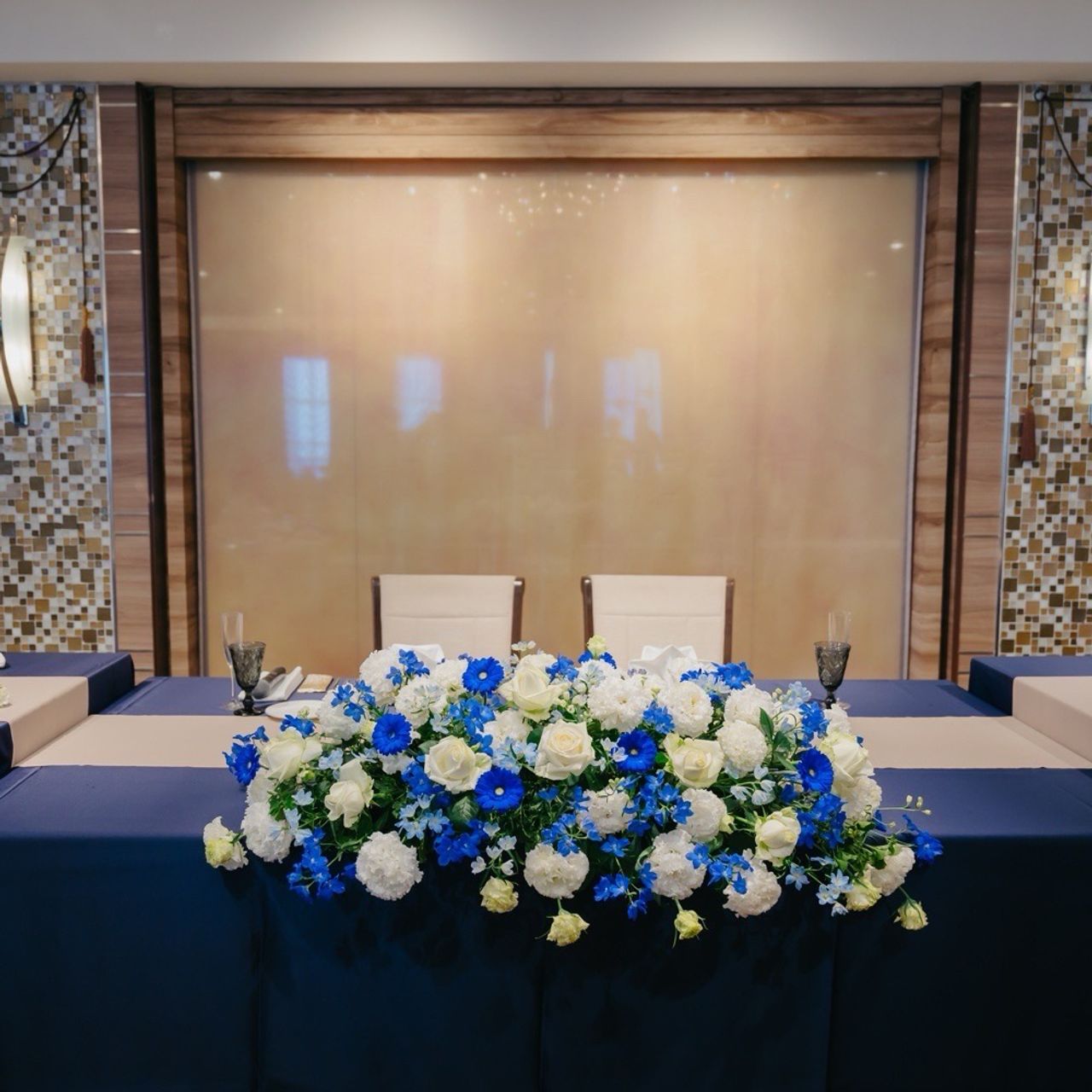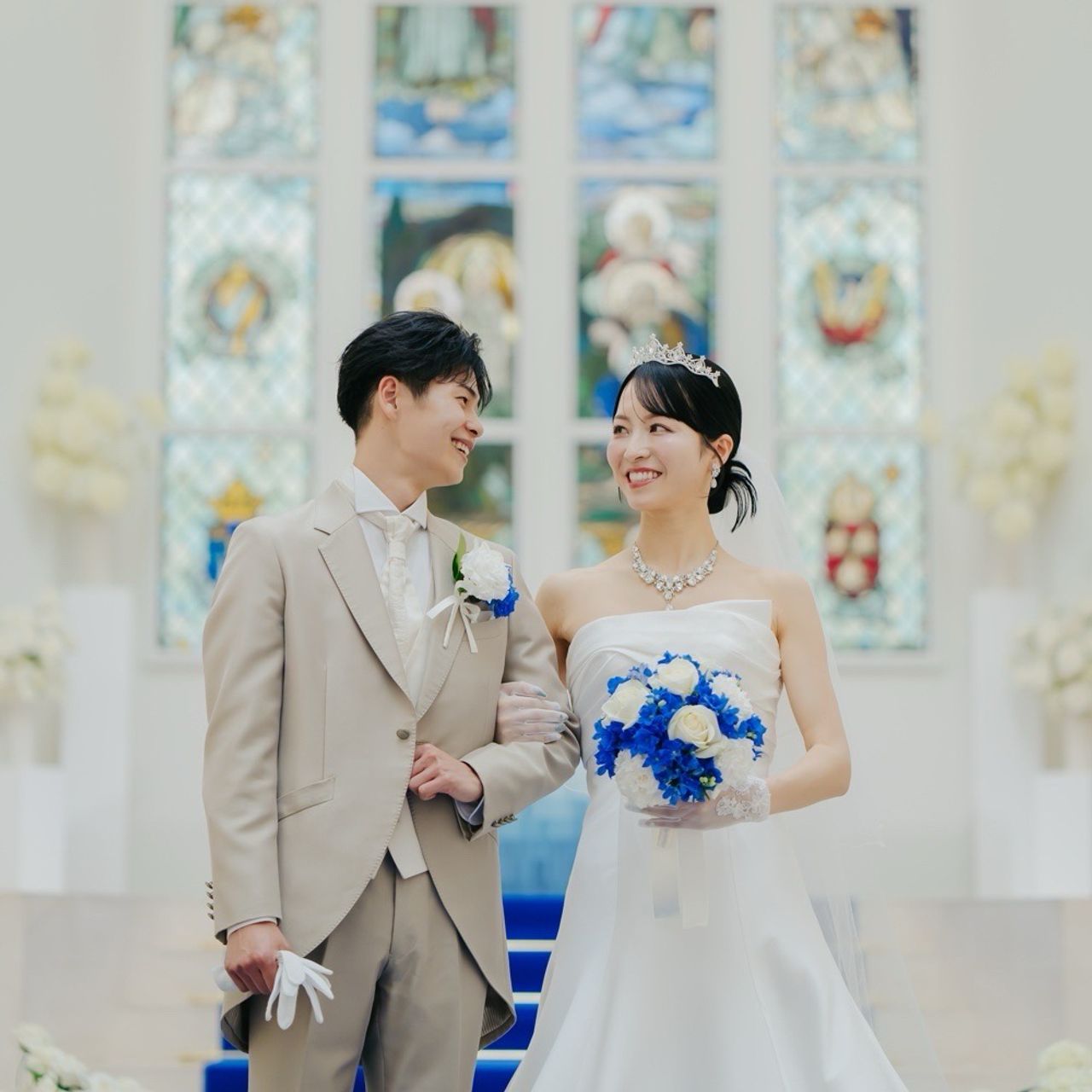 バージンロードが鮮やかな青色で彩られていたことが決め手です。