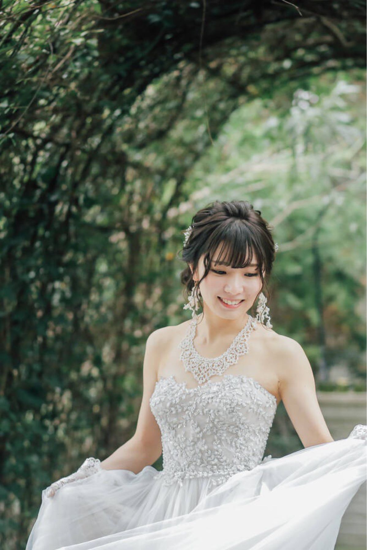 胸元にはビジューが縫い付けられていてチュールがふんだんに使われたスカート部分のシルエットがとても綺麗で気に入りました。