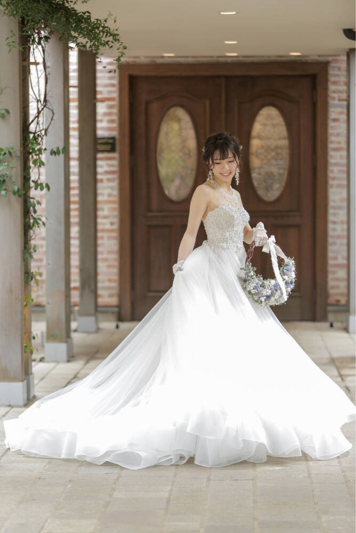 ドレスの色とリースブーケの色と合っていて統一感が出て良かったです。