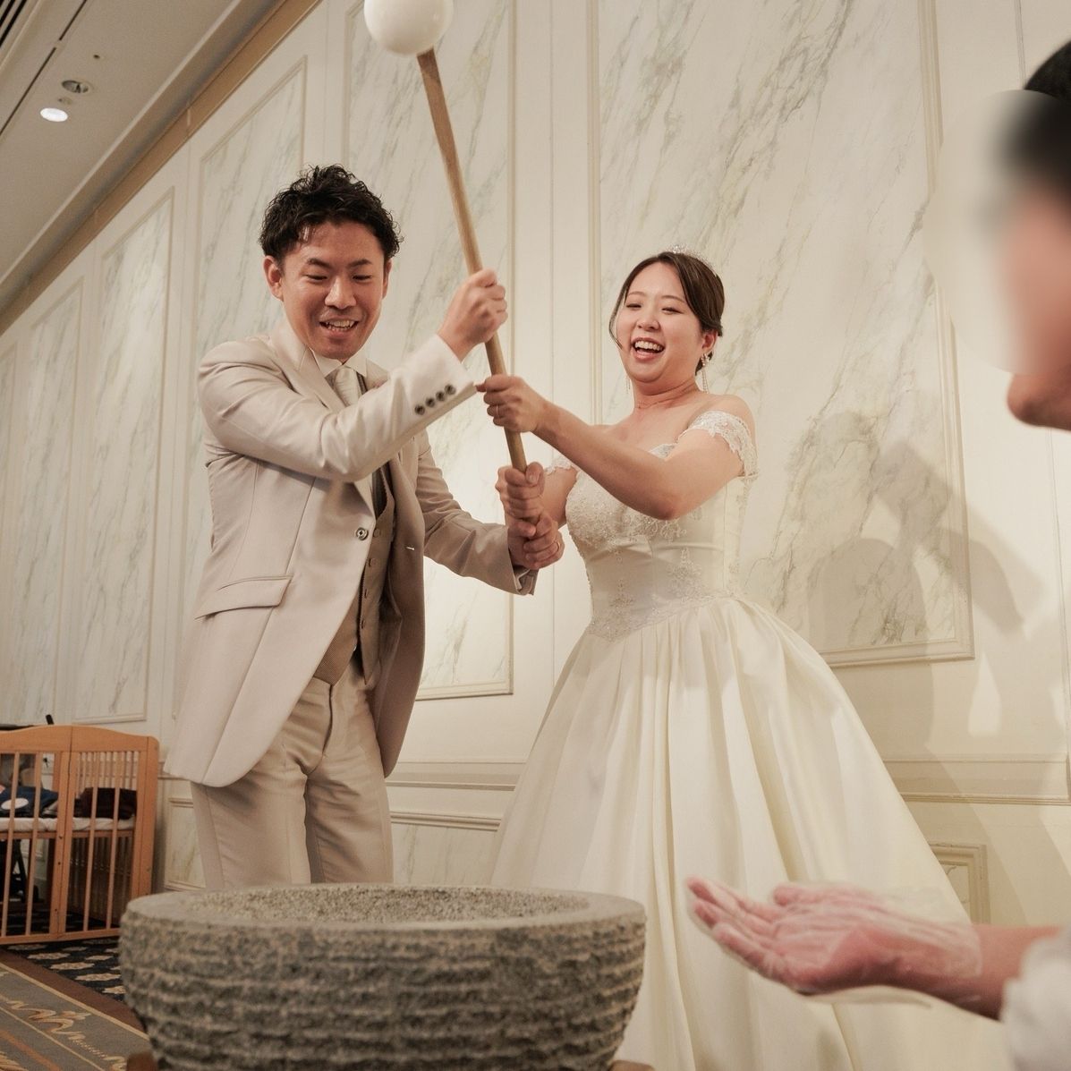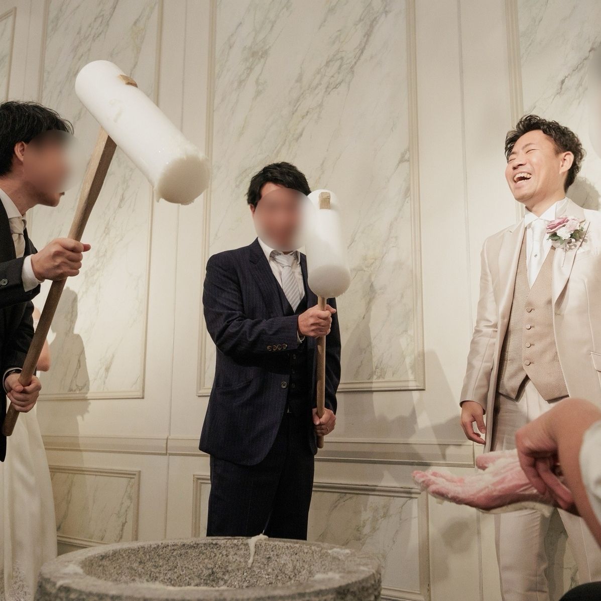 ケーキ入刀を、最初はローストビーフのソース掛けの演出にしようと考えていたのですが、金額が高く諦めました。代わりにお餅つきにしましたが、こちらは思っていたより高くはなく、みんなで楽しめたので結果的に良かったです!