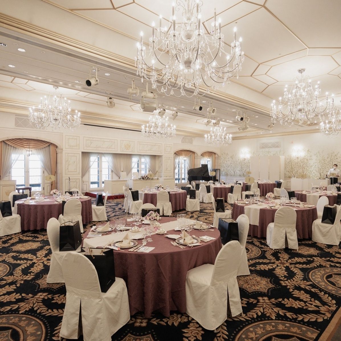 式場見学をした時は、披露宴会場が朝食バイキングのセッティングになっていたので、正直言うとイメージが湧かなかったのですが、本番当日に会場を見ると、自分の思っていたイメージ通りになっていてとても感動しました!