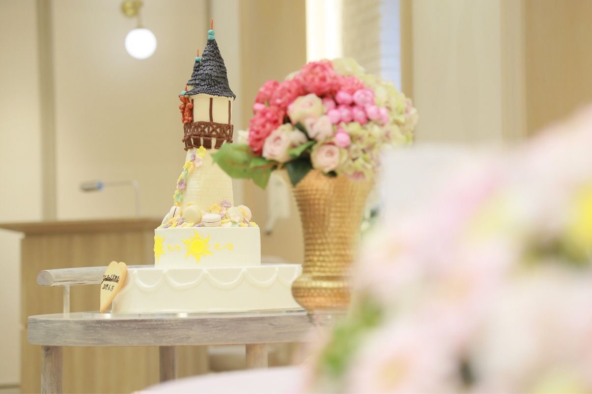 ラプンツェルの塔をイメージしたデザインにしました。(プランナーさんが無理を聞いてくださったので、本来はあまりディズニーの権利的に大々的に公表してはいけないみたいです)