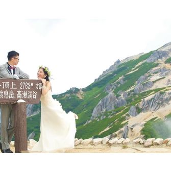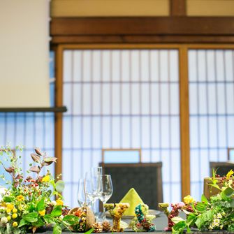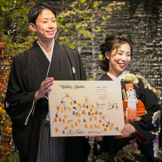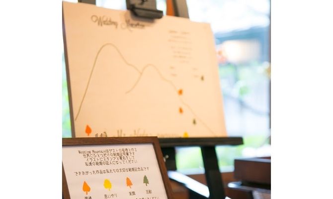 夫婦の趣味の登山をテーマにし、装花やウェルカムスペース、ペーパーアイテムに取り入れました。
