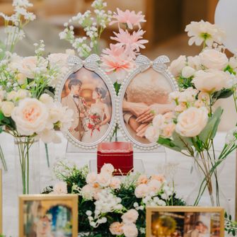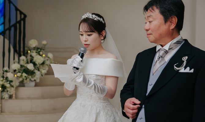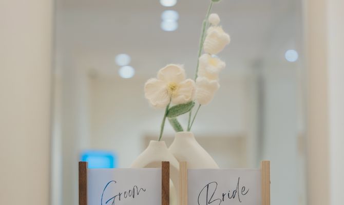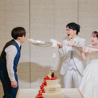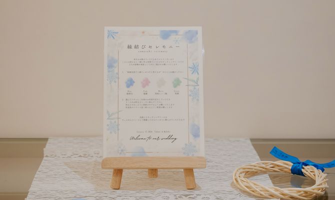また、ゲストの方と作り上げる結婚証明書には「縁結びセレモニー」を取り入れ、署名付きのリボンをリースに結んでいます。