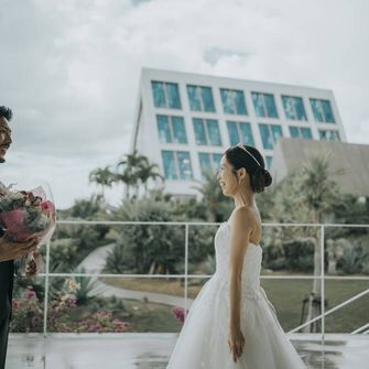 はじめから漠然と海が綺麗なところで結婚式を挙げたいという夢があったので、海が見える式場を探していたところ、こちらのチャペルと海を見て即決でした!