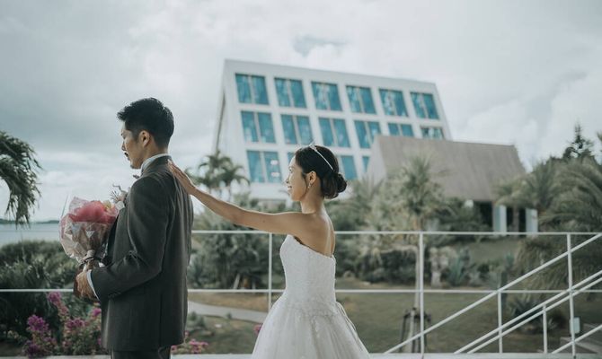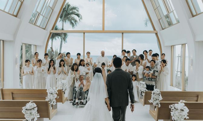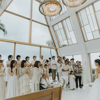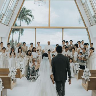 美らの教会(ザ・ギノザリゾート)を選んだ決め手は、海と青空が見えるガラス張りのチャペルとプライベートビーチが目の前にあることです🏝️