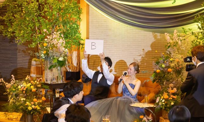 ジブリ風、マッチングアプリ風がテーマです。従来の結婚式にはない、私たちらしい式にすることにこだわりました!そして実際に、アットホームな雰囲気の結婚式が実現できたので、この式場を選んで良かったです。