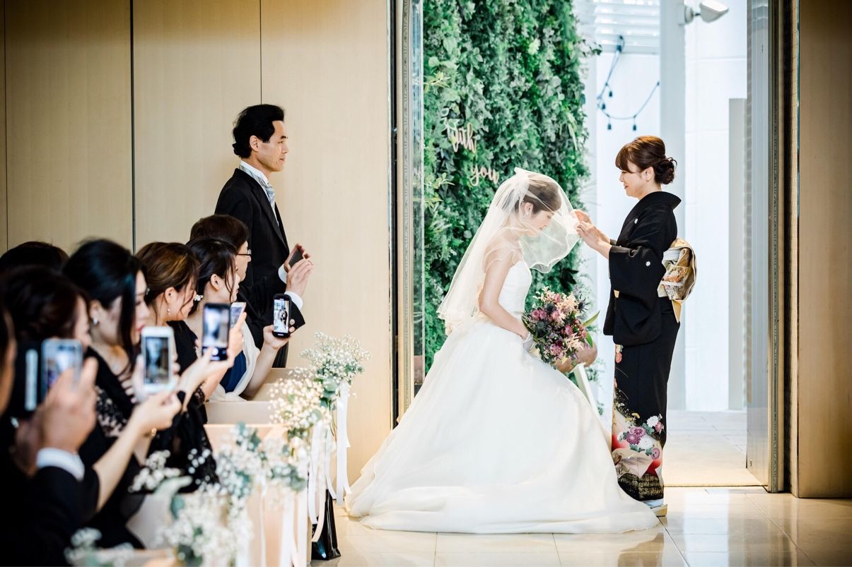 挙式で母からヴェールダウンしてもらったときに、母に抱き寄せられたとき。