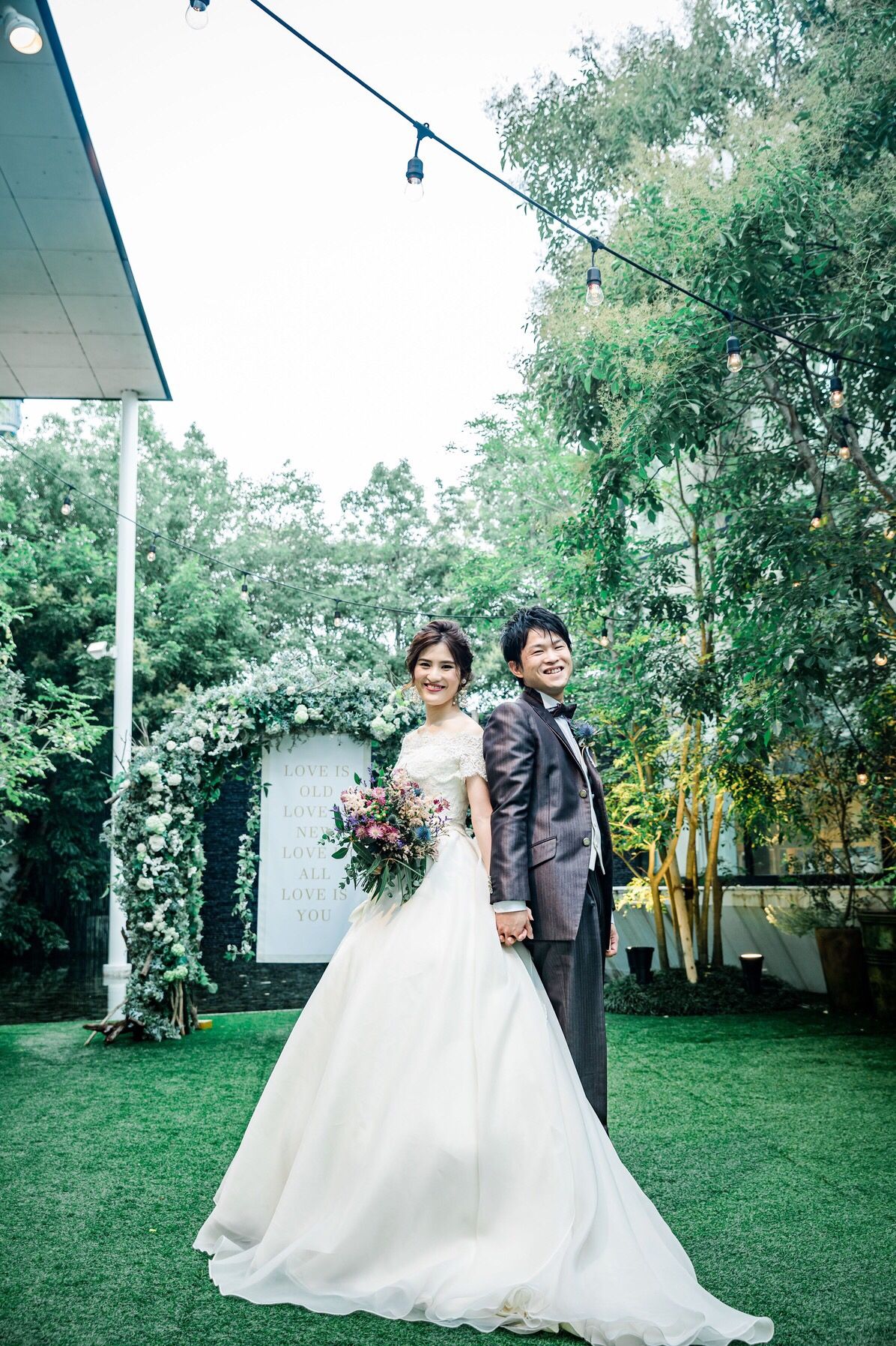 緑いっぱいのガーデンから入場ができ、写真がとても映えます。