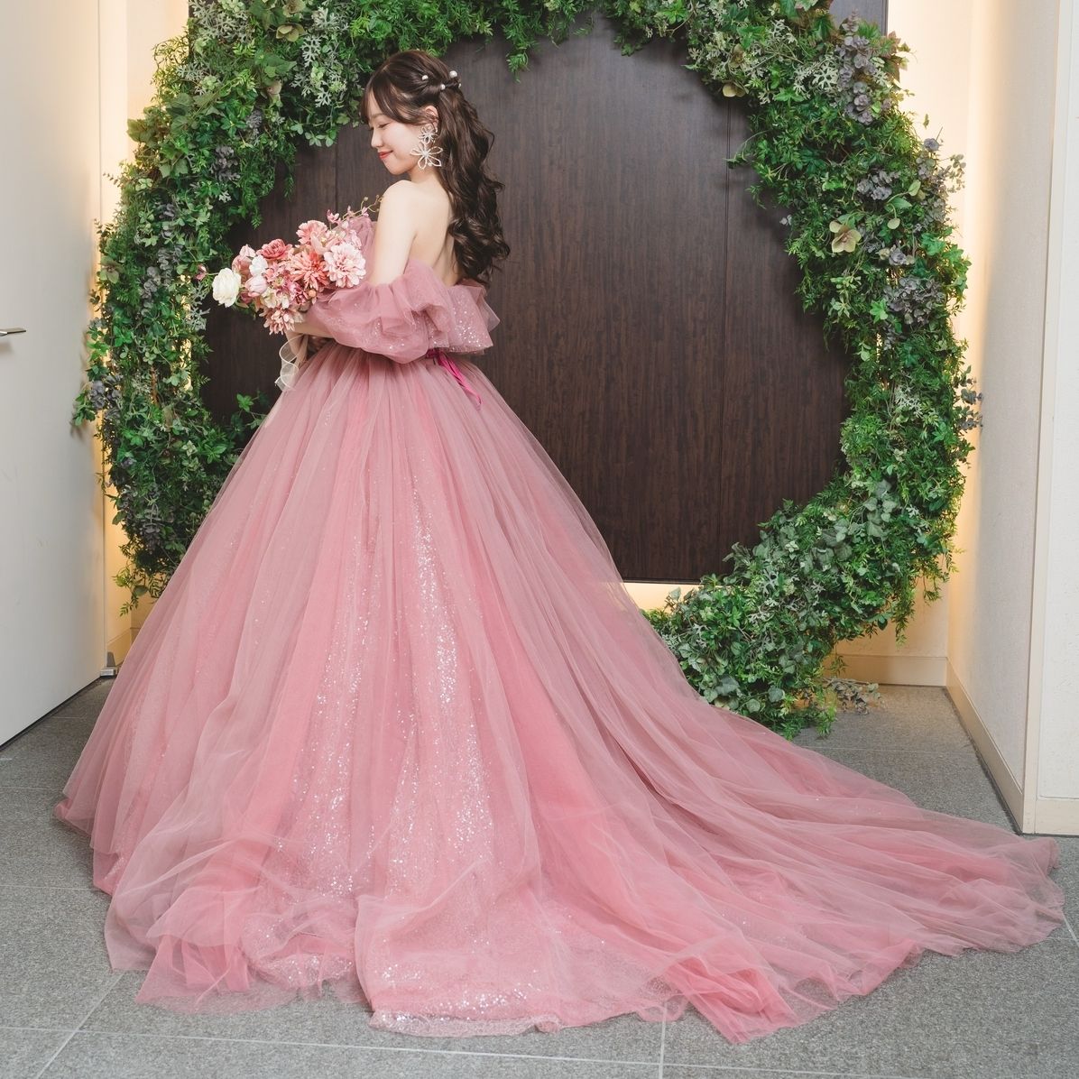 ドレス色当てクイズをしたかったので、カラードレスのピンク以外の色でオーダーしました。
