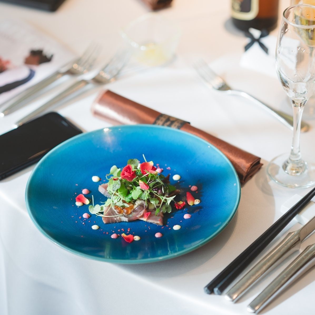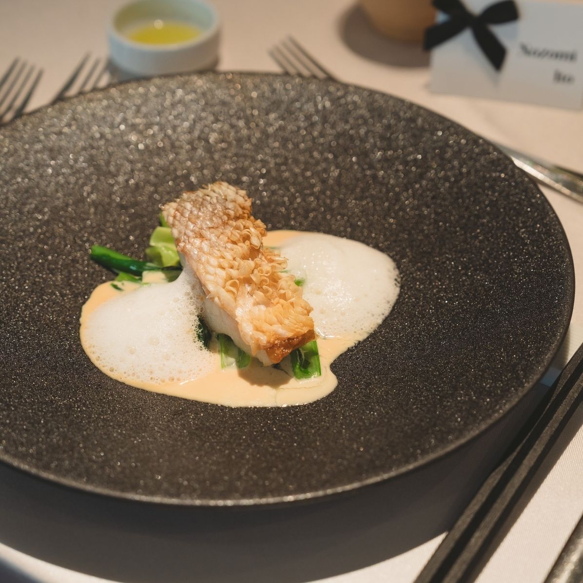 お酒を飲む人、年上の方も多かったので魚料理にお金をかけて、お肉料理はあえて脂身が少ない鴨肉にしました。パンも食べ放題だったので、くどくなるような料理は避けています。
