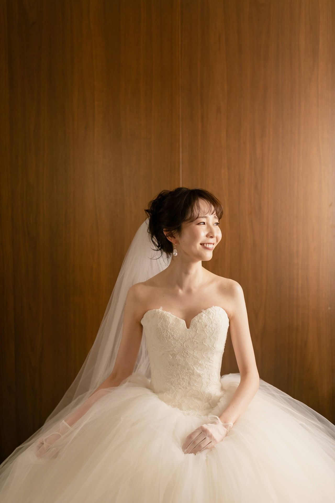 レンタルではないのでお直しの融通が効くところや、シンプルなデザインが決め手となりました。1着目はチュール素材が良かったので、チュール素材のドレスから探しました。