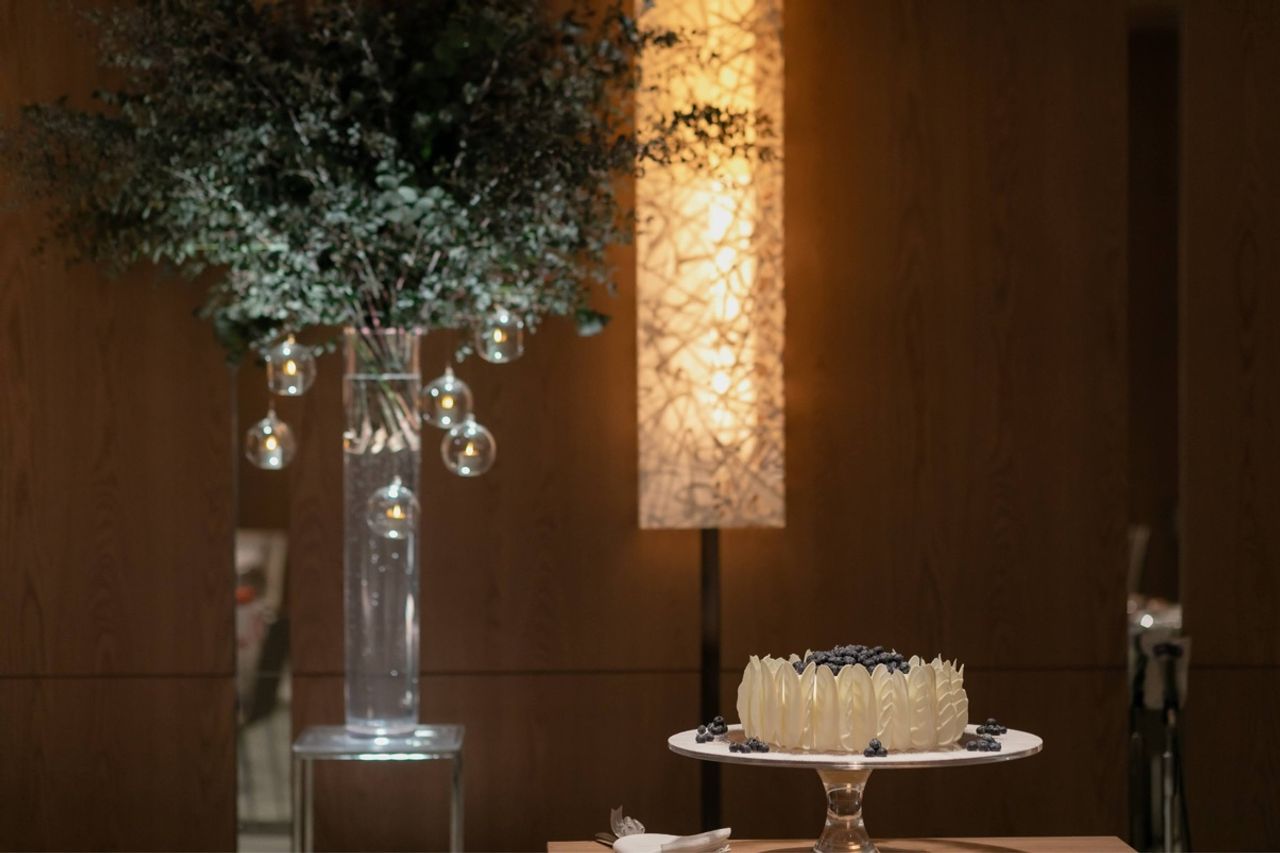 乗せるフルーツは色味的にブルーベリーのみにして頂きました(新婦のこだわりです)。