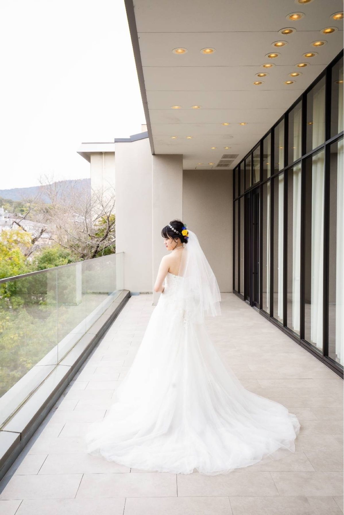 ヘアは高さのあるアップスタイルにせず、落ち着いた感じに仕上げてもらいました。